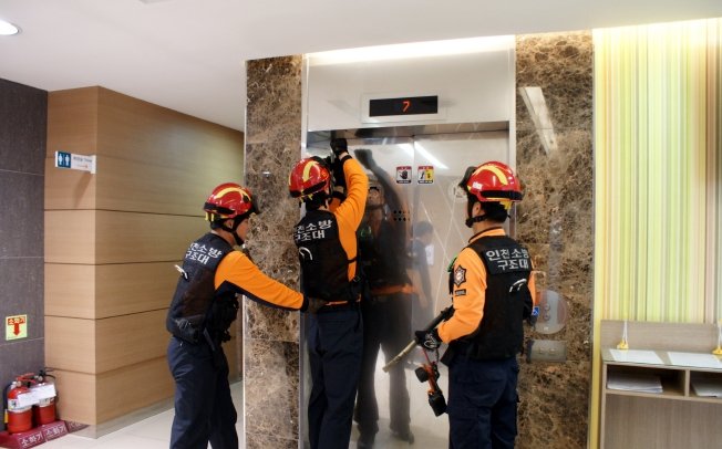♨ 인천공단소방서 조중훈 구조대장은“만약 승강기 갇힘 사고가 발생할 경우 문을 강제로 열거나 탈출을 시도하지 말고 침착하게 비상벨을 눌러 관리실 또는 119 신고를 통해 구조를 기다려야 한다”고 당부했다.