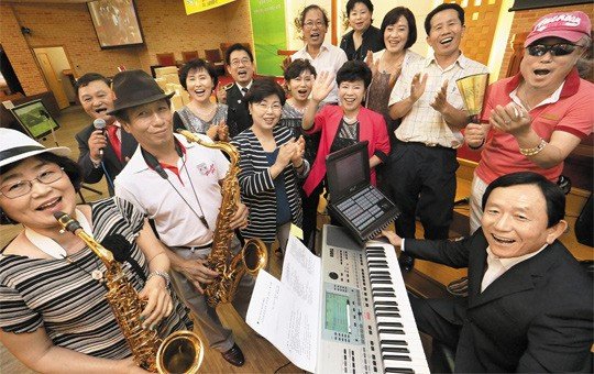 봉사단은 이날 어르신들이 좋아하는 8곡을 선정해 연주하고, 이달 생일을 맞은 30여명을 위해 파티도 열었다. 봉사단은 이날 참석한 노인 모두에게 관절통 약도 선물했다. 전자오르간 반주를 맡은 김석암(66) 전 가평경찰서장은 "군악대에서 배운 솜씨"라며 "단원들 모두가 죽기 전까지 봉사하자고 서약서까지 썼다"면서 웃었다