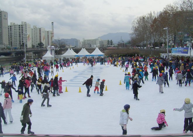 대구시가 시민들의 겨울운동 및 체력증진과 어린이 놀이 공간 마련을 위해 개장한 신천스케이트장이
