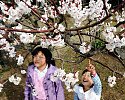 포근한 봄 날씨를 보인 지난 3월17일 제주시 오라동 월정사를 찾은 어린이들이요염한 자태로꽃망울을 터트린 매화를 보며 환하게 웃고 있다.