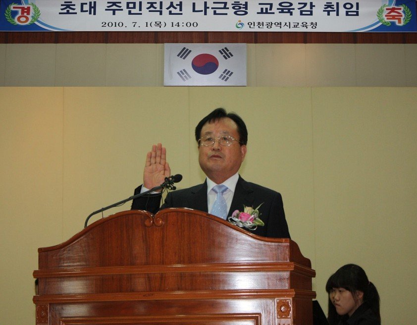 나근형 교육감은 취임사를 통하여 인천시민 여러분의 여망에 따라 이 자리에 서게됨을 진심으로 감사드리고, 2014년 아시안게임을 성공리에 마쳐 세계일류도시로 힘차게 도약할 것이며, 이와 더불어 우리 인천교육도 세계 속에서 경쟁력을 갖춘 인재를 육성하는 “명품 인천교육”을 창출하기 위하여 계속 노력해야 할 것이라고 했다. | |||