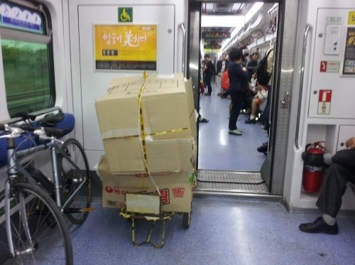 하지만 그런 시간을 피했어도 우연히 사람이 많이 타고 혼잡할 경우 휠체어가 안전하게 피신하고 다른 사람들에게 덜 불편하게 할 수 있는 유일한 공간이 바로 그곳인데 사진에서 보는 것처럼 그렇게 짐을 떡하니 갖다 놓고 나 몰라라 하는 건 도무지 이해가 안 되는 행동이 아닐 수 없다.