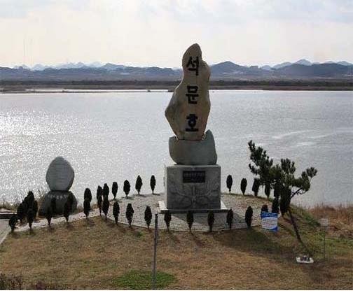 석문호는 1995년 동양 최대 규모인 10.6km의 석문방조제를 축조 바다를 메우면서 2215ha의 농경지, 800ha의 국가산업단지 등 총 3740ha에 달하는 국토 확장사업에 따라 조성된 담수면적 874ha의 호수.