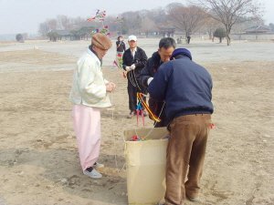 (메인사진 = 지난해 해미읍성에서 펼쳐진 전통 민속놀이 체험객에 선뵐 긴 줄 연날리기 시연을 준비하는 연날리기의 대가 최진규 선생)