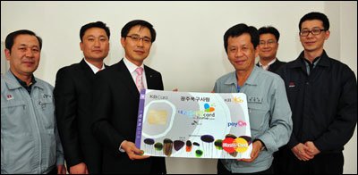 한맹용 공장장은 5일 광주 북구 임동 공장장실에서 100여 명의 임ㆍ직원들이 자발적으로 작성한 '내 고장 사랑카드' 가입신청서를 국민은행에 전달했다. 한 공장장은 "본사는 물론, 광주2공장에도 동참을 적극 권유하겠다"고 밝혔다. 이 카드는 사용액의 0.2% 등이 적립돼 북구의 인재 육성 장학 기금으로 사용된다.